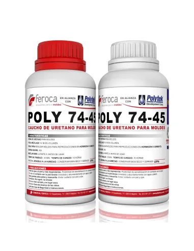 Il Poly 74-45 è una gomma di poliuretano bicomponente con durezza Shore A45 pensata per la produzione di stampi flessibili ad alta resa. Vulcanizza a temperatura ambiente senza contrazione apprezzabile, si mescola in parti uguali in volume e non richiede camera a vuoto, il che lo rende una soluzione diretta ed efficiente sia in laboratorio professionale che in ambienti semi-industriali. Si distingue in particolare nelle applicazioni con calcestruzzo pigmentato, dove garantisce riproduzioni con colori precisi e uniformi.