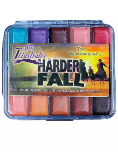 La palette Skin Illustrator On Set Harder Fall è una collezione di 10 colori all'alcool progettata specificamente per le tonalità scure della pelle, creata per la produzione Netflix The Harder They Fall. Compatibile con pelle naturale, silicone e lattice, offre un finish professionale a lunga durata che regge durante le riprese grazie alla sua formulazione attivata con alcool.
