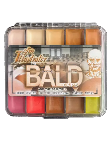 La palette Skin Illustrator On Set BALD Caps è una collezione di 10 colori all'alcool progettata specificamente per l'applicazione di bald cap negli effetti speciali e nella caratterizzazione professionale. Formulata dal trucchiere Adrian Rigby, riunisce in un unico astuccio le tonalità di carnagione e i correttori indispensabili per ottenere transizioni realistiche su qualsiasi superficie: pelle naturale, silicone e lattice.