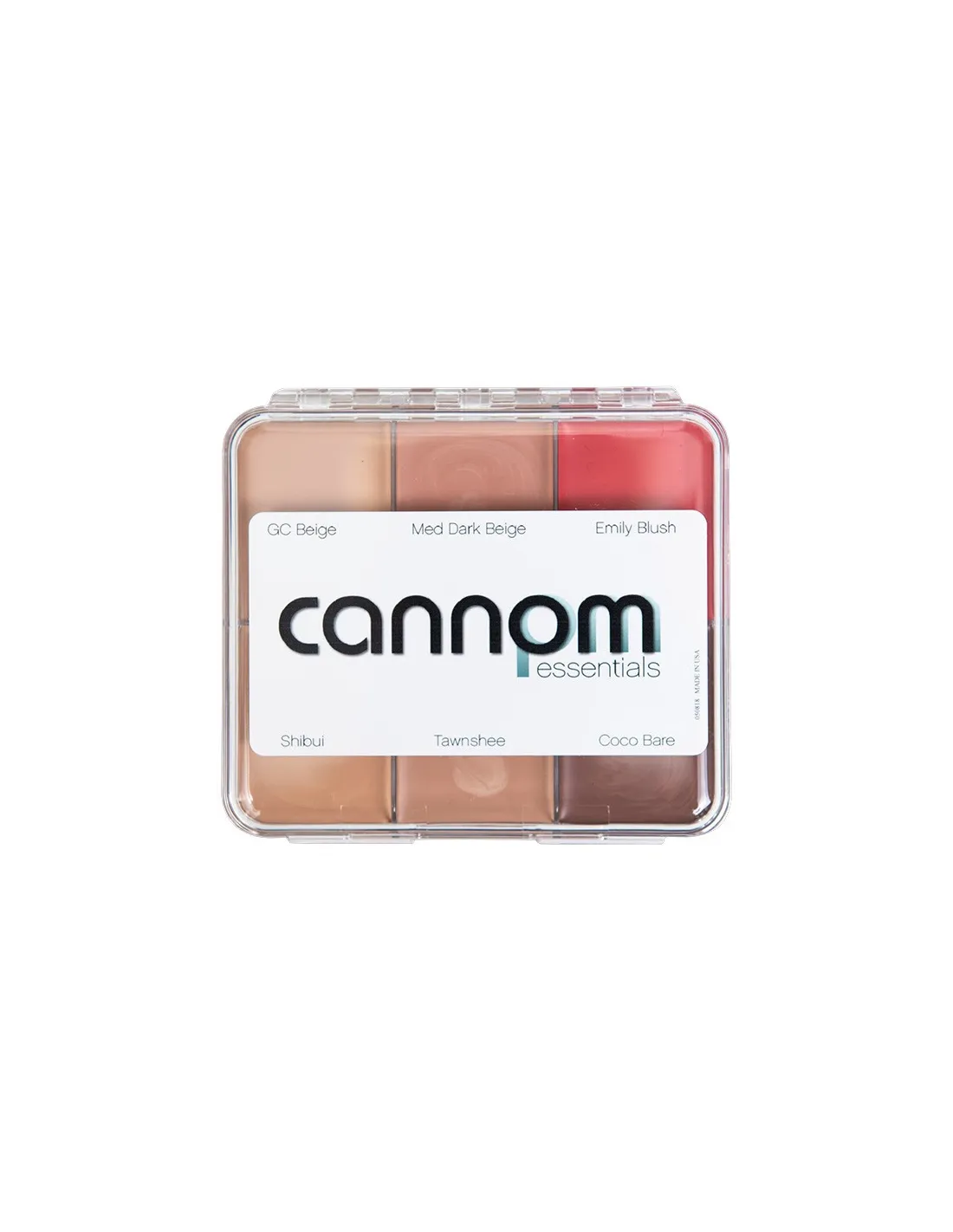 La palette Cannom Essentials è una selezione personale di Greg Cannom, orientata ai suoi toni di lavoro abituali per la caratterizzazione cinematografica. Altre palette della gamma, come la Flesh Tone o la Complexion, offrono gamme di tono più ampie o specifiche. La FX Palette è orientata a effetti più drammatici come ferite, lividi ed effetti gore.
