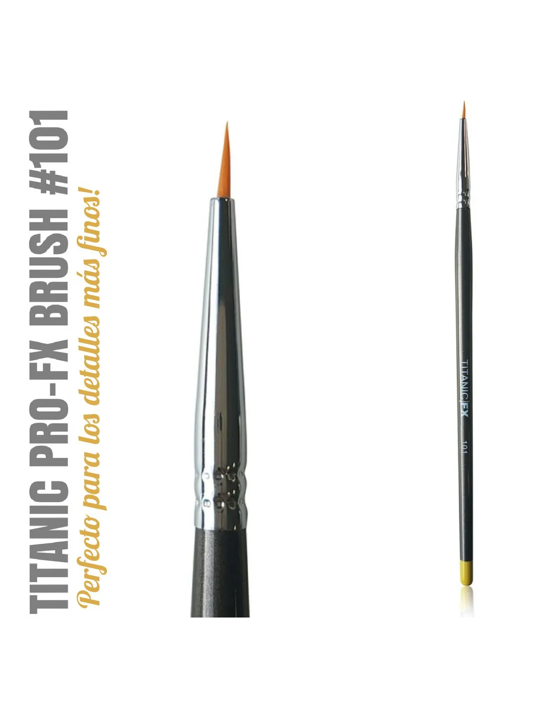 Il Titanic Pro-FX Brush 101 è un pennello da delineazione fine progettato specificamente per lavori di trucco per effetti speciali e protesi. Le sue setole sintetiche vegane resistono al contatto con solventi e adesivi protesici, e la punta extra fine permette di lavorare con una precisione che i pennelli per uso generale non possono offrire. Se applichi, dipingi o rimuovi protesi in silicone o lattice, questo pennello è lo strumento giusto.