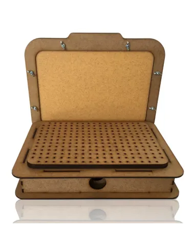 Termoformatrice formato A4 per Worbla e HIPS. Montaggio in 5 min. Richiede un aspirapolvere standard. Progettata da Simbiox, distribuita in esclusiva da Feroca.