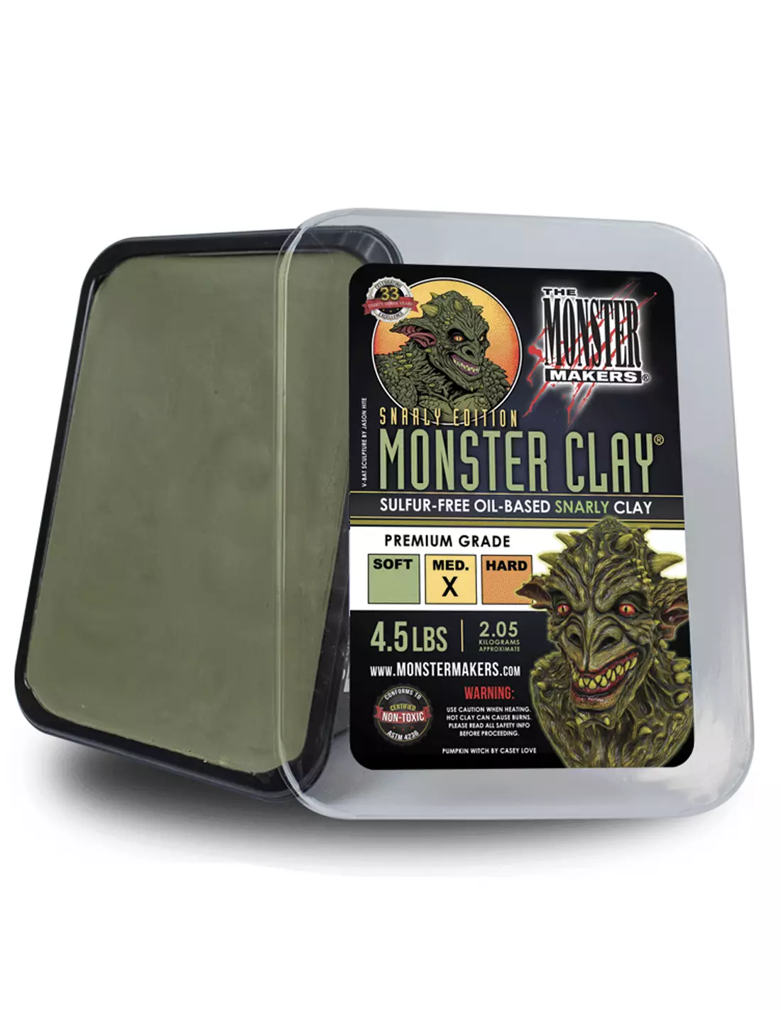 Monster Clay 33rd Anniversary "Snarly" Medium è la scelta abituale di scultori professionisti, artisti degli effetti speciali e realizzatori di protesi. La sua durezza media offre l'equilibrio perfetto tra facilità di lavorazione e capacità di ritenere dettagli fini. Essendo priva di zolfo, puoi applicare silicone al platino direttamente sulla scultura senza rischio di inibizione della polimerizzazione.