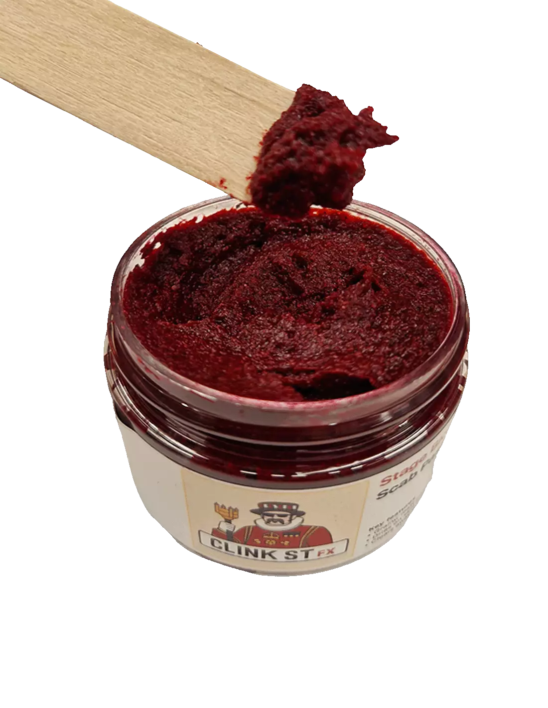 Scab Paste di CLINK ST FX è una pasta di sangue finto scura e granulosa progettata specificamente per ricreare croste, ferite invecchiate e medicazioni dall'aspetto realistico. Si applica direttamente sulla pelle o sulle protesi e, asciugandosi, sviluppa una finitura opaca di alta credibilità. Senza macchie permanenti: si rimuove con acqua e sapone.