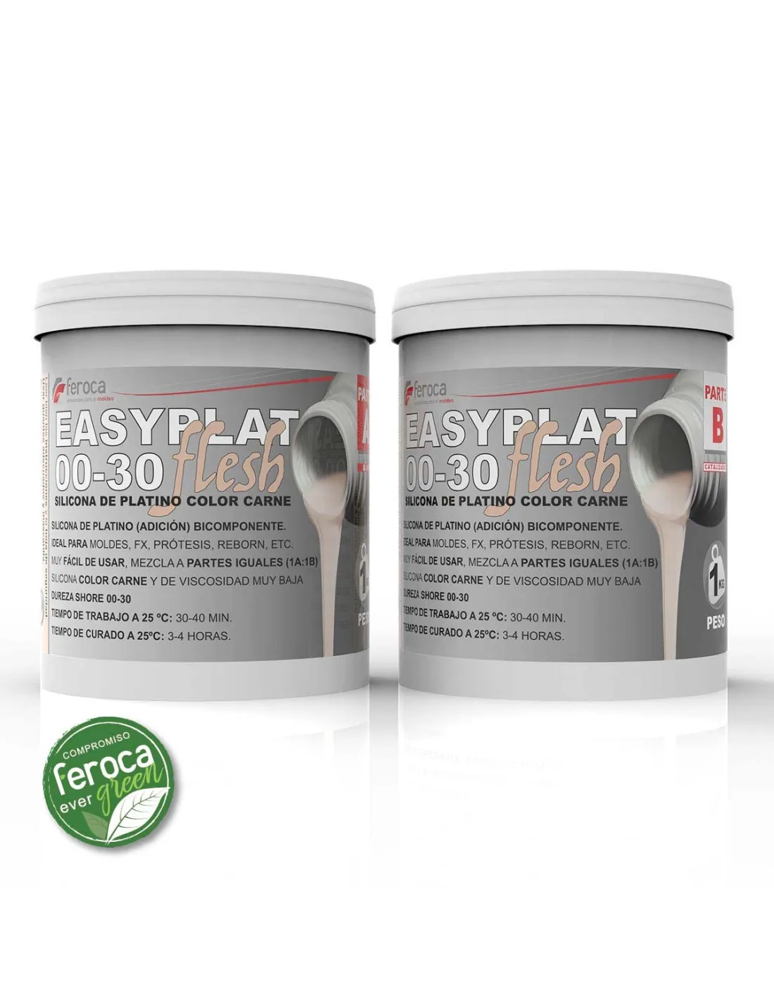 EASYPLAT FLESH 00-30 è una silicone al platino (addizione) bicomponente di colore carne e durezza Shore 00-30, pensata per applicazioni che richiedono una flessibilità estrema e un aspetto iperrealista. Il suo rapporto di miscelazione in parti uguali (1A:1B) e la bassa viscosità la rendono accessibile sia ai professionisti degli effetti speciali che agli artisti di protesi e ai produttori di bambole Reborn.