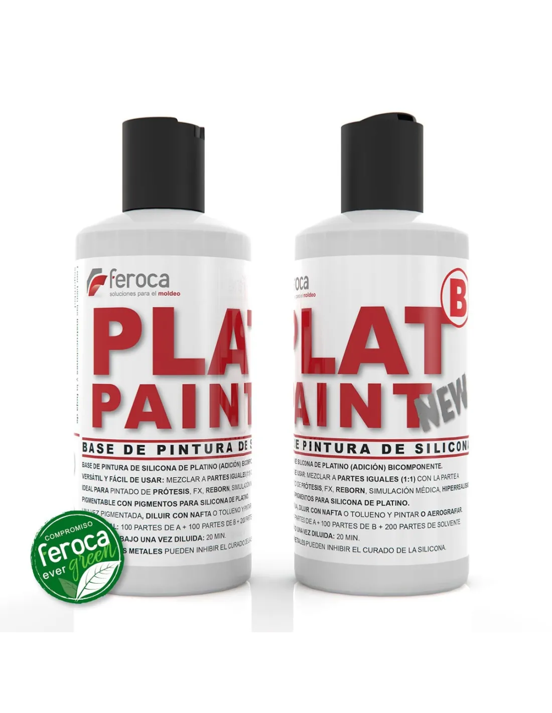 Plat-Paint New è una base di pittura in silicone al platino (addizione) bicomponente, formulata specificamente per pigmentare e dipingere superfici in silicone flessibile. Sviluppata per professionisti degli effetti speciali, protesi anaplastologiche, bambole e reborn, consente di creare strati di colore ultrasottili che si estendono e piegano con il silicone senza incrinarsi né staccarsi.