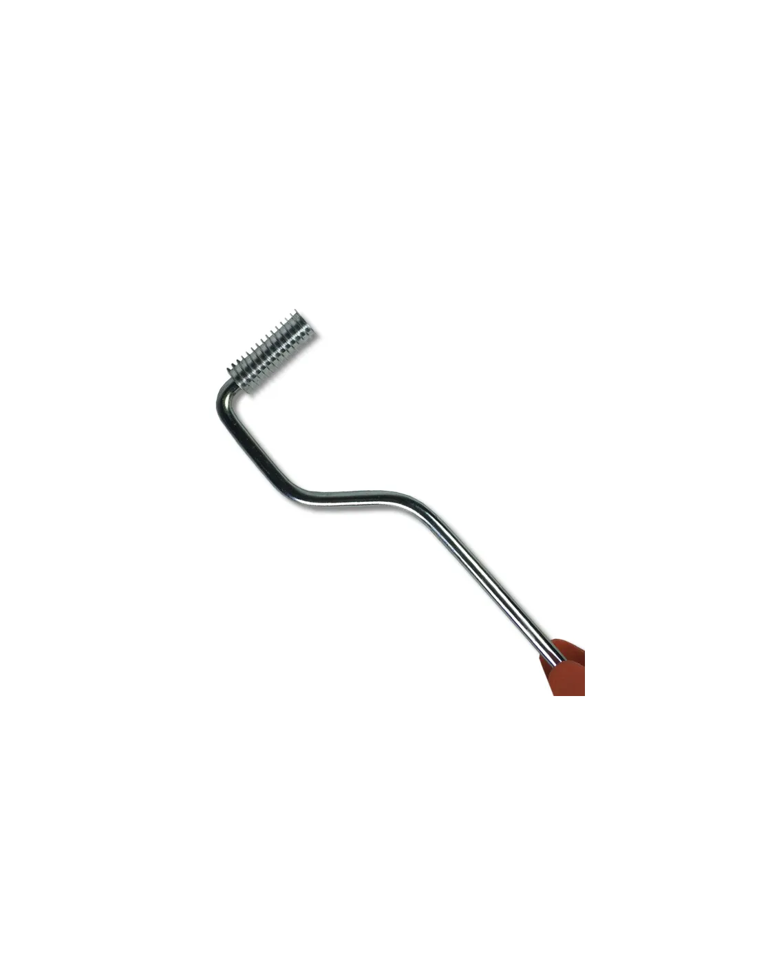 Il rullo metallico degassatore standard ha dimensioni maggiori ed è ottimizzato per superfici ampie. Questo modello con scanalatura verticale e misure 14 x 35 mm è più piccolo e manovrabile, il che lo rende ideale per zone confinate, angoli interni e dettagli dove il rullo grande non entra o non scorre correttamente.