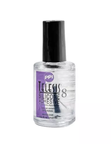 A versão brush-on do Telesis 8 traz o adesivo num frasco com pincel incorporado, o que permite uma aplicação mais controlada e precisa em bordas finas, contornos dos olhos e zonas de difícil acesso. A versão em tubo (Telesis 8 em tubo) é mais prática para superfícies amplas e aplicações rápidas. A fórmula adesiva é equivalente.