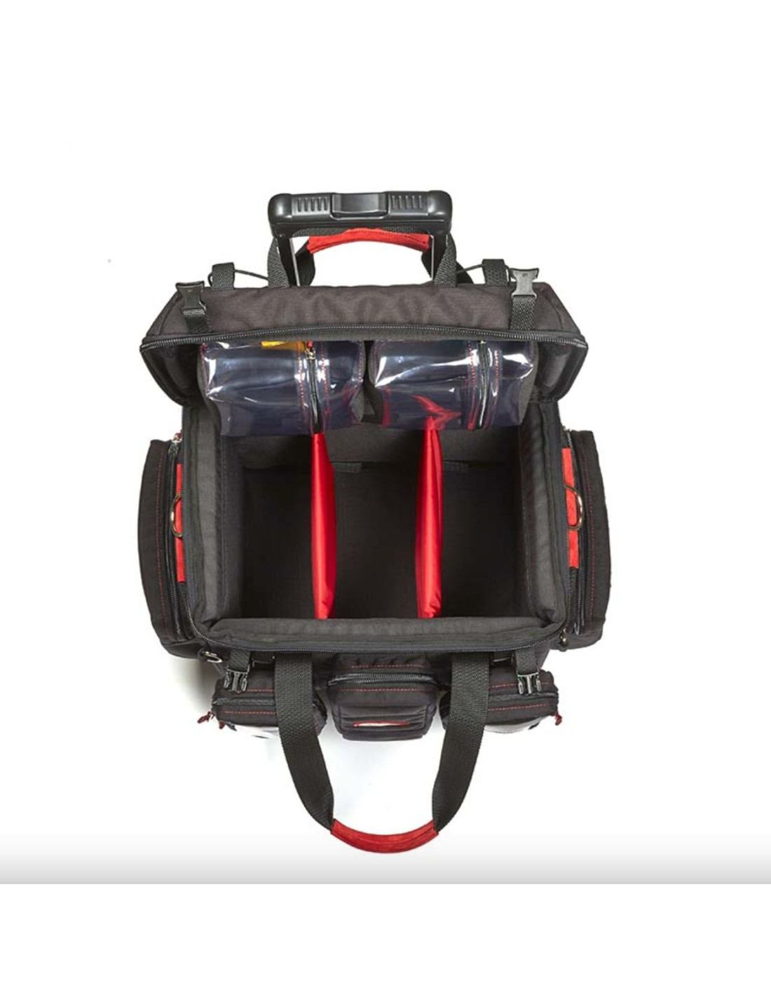 Está equipada com divisórias internas ajustáveis e 3 bolsos transparentes amovíveis para guardar os produtos de cada ator. Os bolsos exteriores podem ser separados e transportados no cenário.