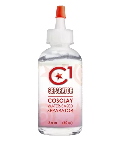 Nem todos os agentes de liberação são compatíveis com argila polimérica. Muitos agentes de liberação à base de solvente ou à base de óleo podem degradar a plasticina ou interferir na cura. O Separador C1 está formulado especificamente para CosClay: base água, não tóxico e concebido para suportar o ciclo de cozedura a 135 °C sem alterar as propriedades da argila.
