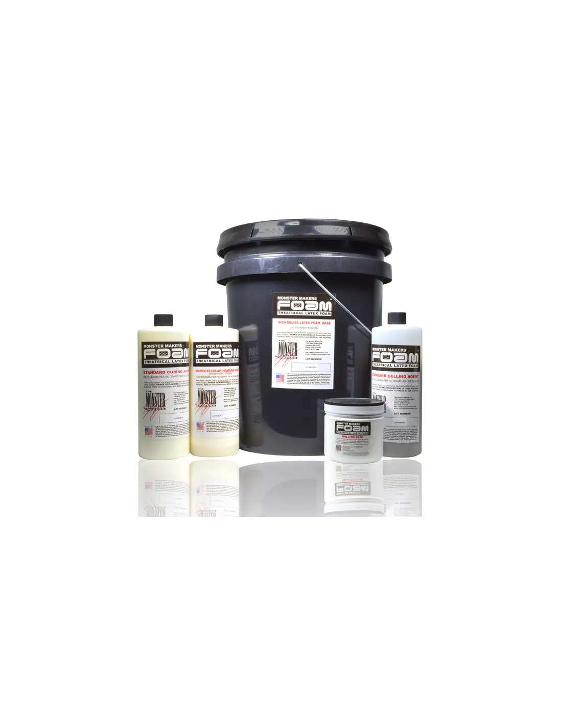 A espuma de látex protética da Monster Makers é compatível com moldes de alumínio, cimento/gesso, fibra de vidro, resina epoxi e silicone. Os moldes de alumínio são o padrão na produção profissional pela sua condutividade térmica e durabilidade. Os moldes de gesso são uma opção acessível para estúdios e projetos independentes, embora exijam uma secagem completa antes de serem utilizados.
