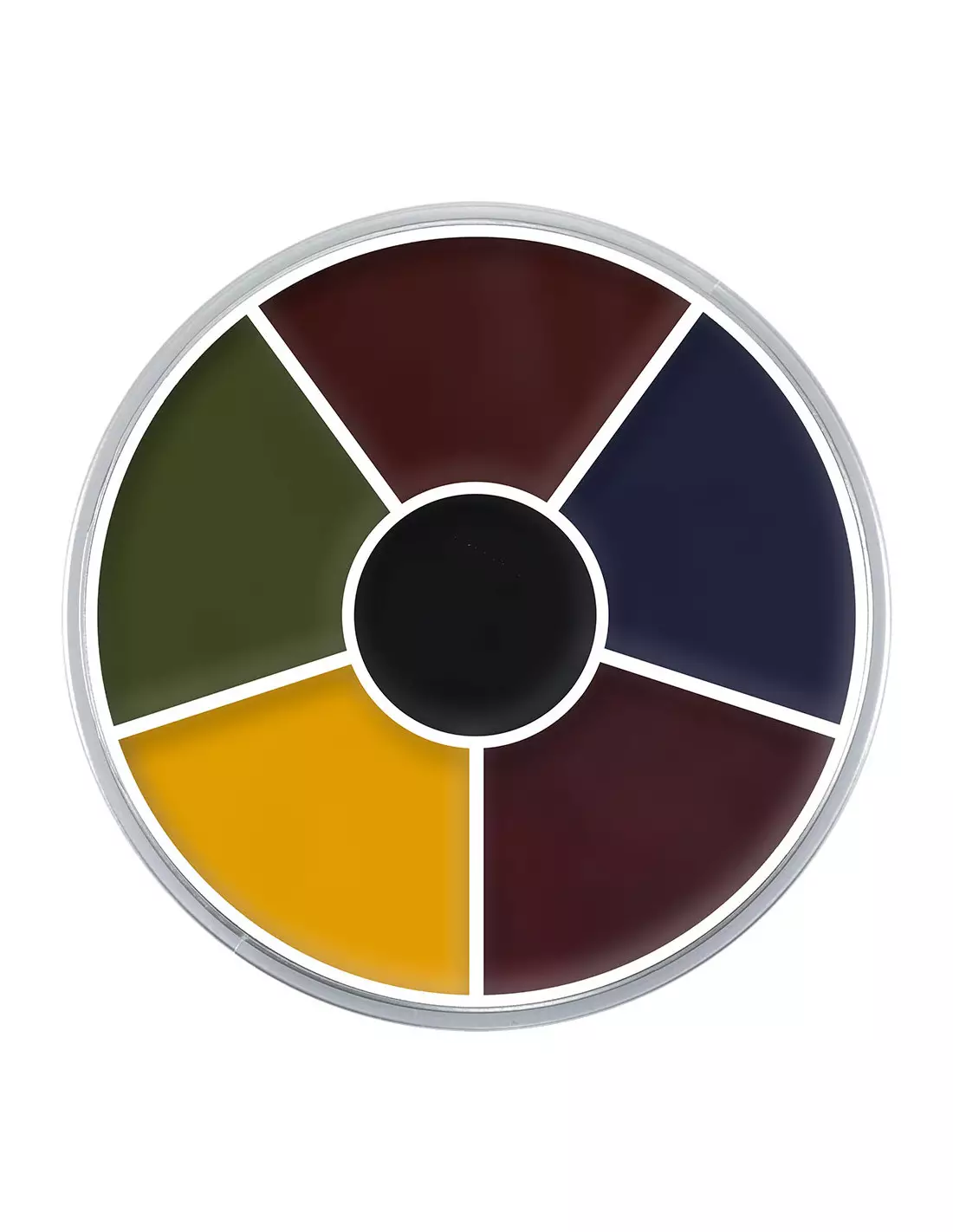 A Cream Color Circle FX é uma paleta de maquilhagem gordurosa em formato roda com 6 cores prontas para aplicar diretamente na pele. A sua fórmula à base de cera e óleo oferece alta pigmentação e uma aplicação suave que permite tanto efeitos intensos como transições subtis, sendo uma ferramenta versátil para efeitos especiais, Halloween, cosplay e caracterização teatral.
