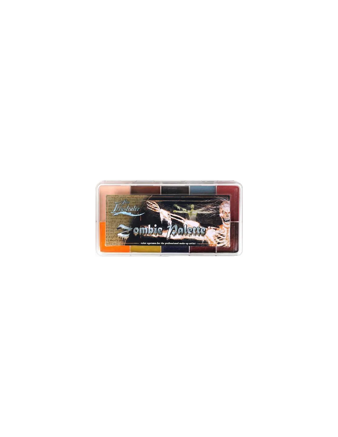 A Skin Illustrator Zombie Palette é uma paleta de maquiagem a álcool de 10 cores formulada especificamente para recriar efeitos de mortos-vivos, zombies e cadáveres com resultados de nível cinematográfico. Desenvolvida para o artista vencedor de dois Óscares David LeRoy Anderson e utilizada em produções como Madrugada dos Mortos (2004), oferece uma cobertura excecional e uma aderência duradoura sobre pele, silicone e látex.