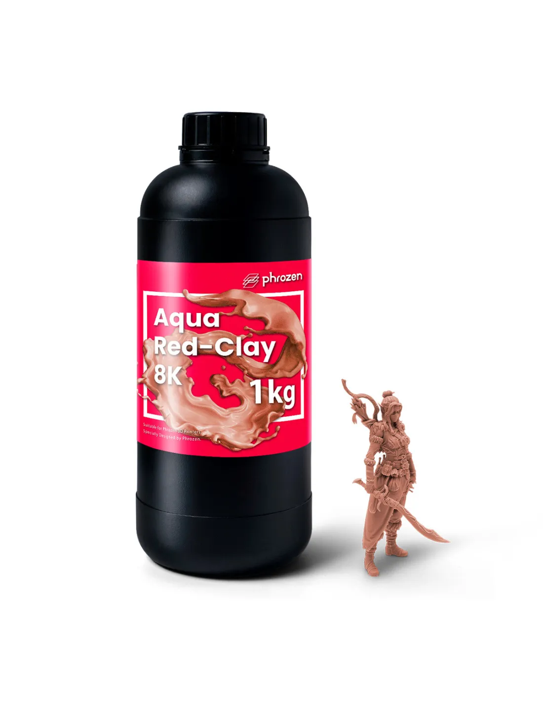 A Phrozen Aqua Red Clay 8K é uma resina fotopolimérica de alta definição concebida para impressoras LCD com ecrã 8K. O seu tom vermelho argila facilita a visualização de detalhes finos durante a modelação e o pós-processamento, enquanto a sua fórmula de baixo odor e baixa contração a torna uma opção sólida para trabalhar em espaços fechados com resultados dimensionalmente precisos. Ideal tanto para profissionais como para utilizadores avançados que procuram qualidade de impressão sem compromissos.