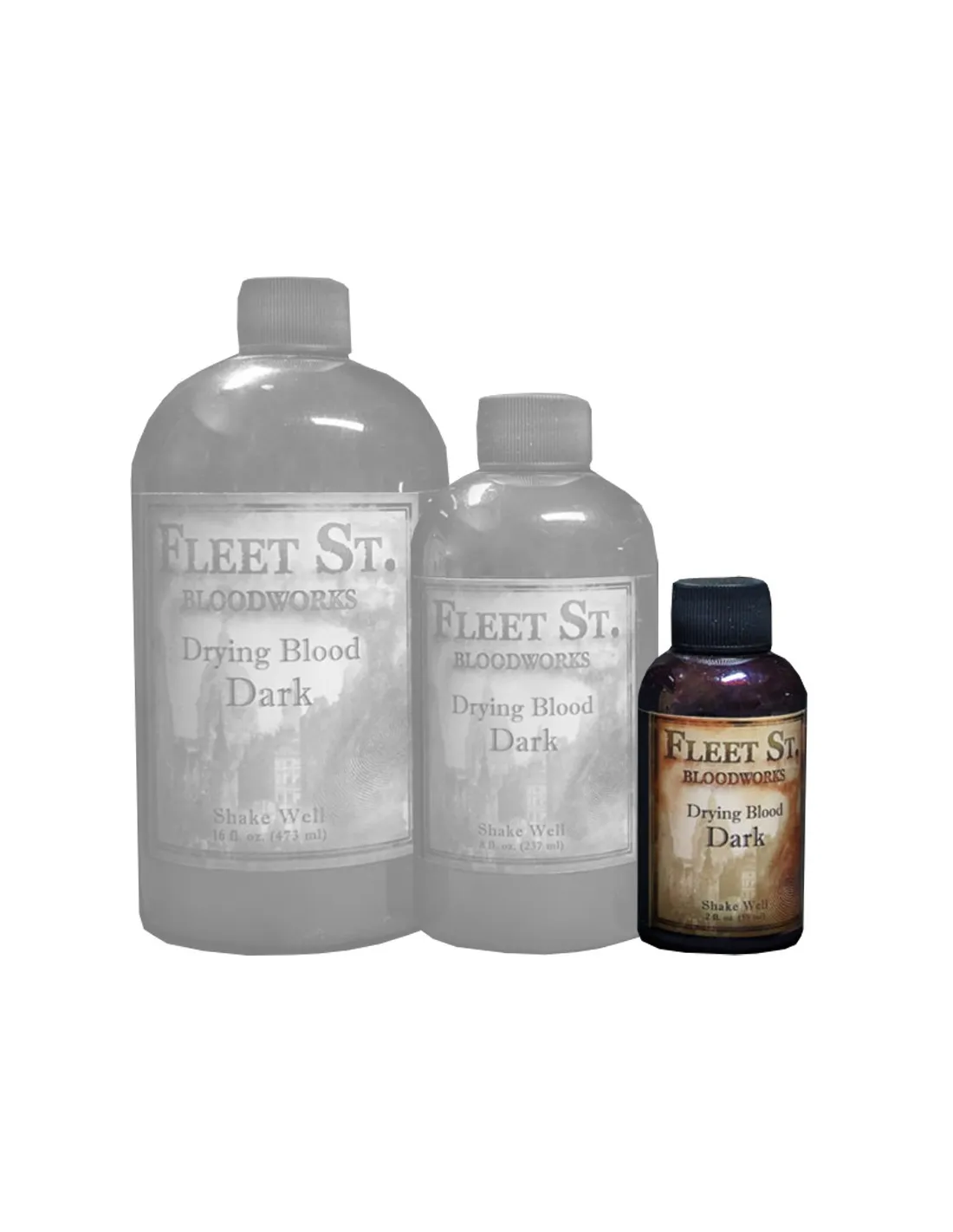 Fleet Street Drying Blood Dark é um sangue artificial de efeitos especiais formulado com pigmentos com aprovação FDA que mantém um aspeto húmido e fresco mesmo depois de completamente seco. O seu tom escuro e profundo acrescenta dramatismo e realismo a qualquer caracterização, e ao contrário de outros sangues do mercado, permanece no lugar sem migrar nem dissipar-se com o passar do tempo.