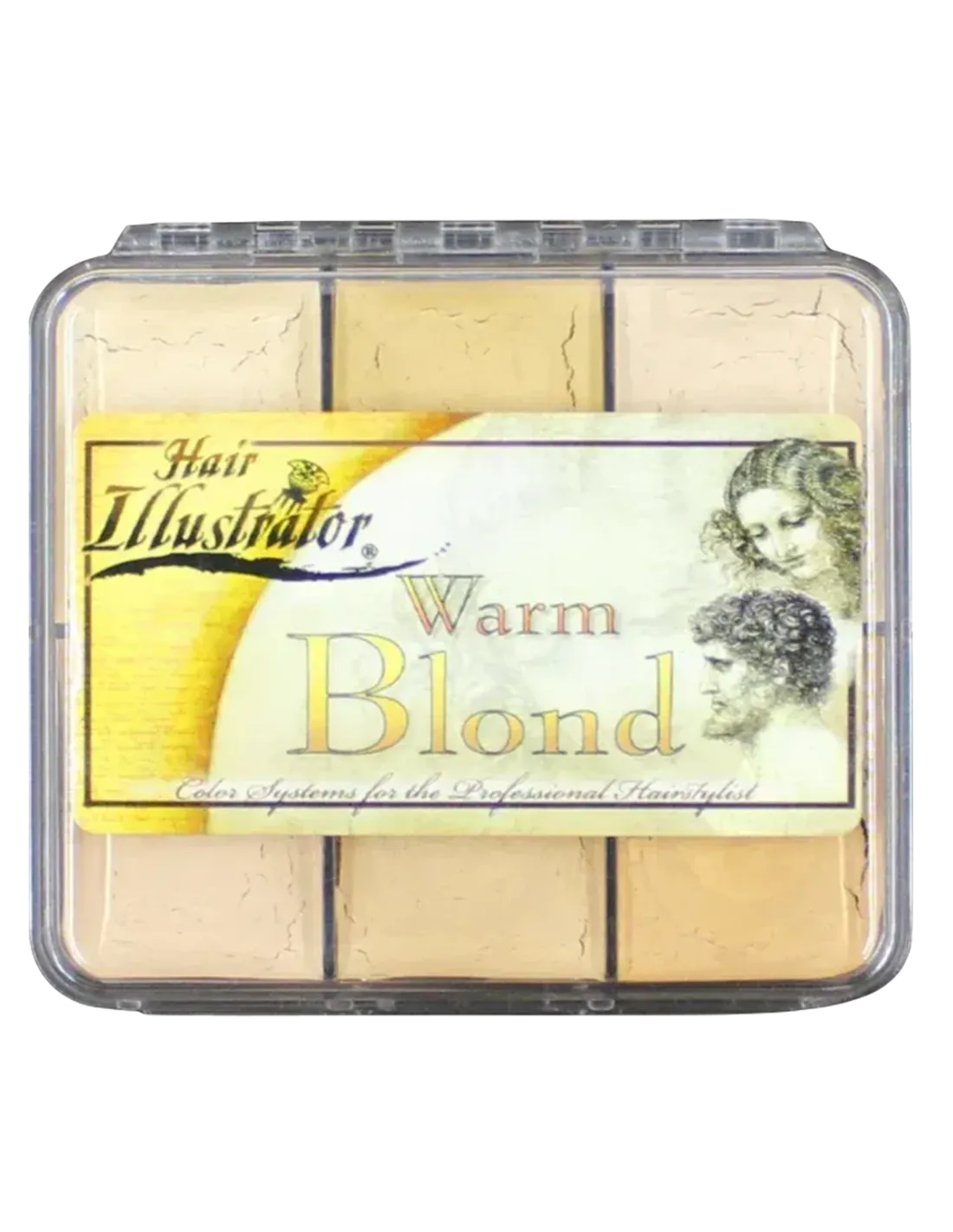 A Warm Blonde Palette funciona muito bem em combinação com paletas de tons de pele ou envelhecimento. Se precisas de simular cabelo com raízes escuras, matizes cinza ou cabelos brancos incipientes, mistura os seus tons com os da Skin Illustrator Flesh Tone Palette ou da Skin Illustrator FX Palette. A compatibilidade entre todas as paletas da família é total.