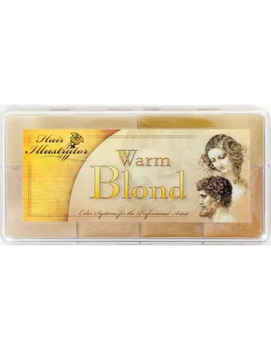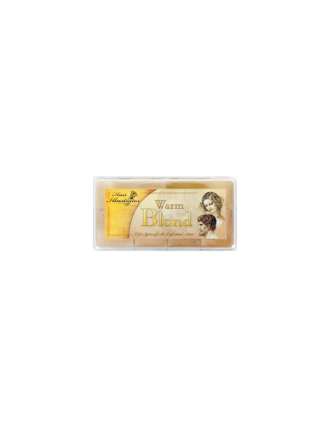 A Hair Illustrator Warm Blonde Palette é uma paleta de maquiagem a álcool especializada na gama de loiros quentes, com seis cores formuladas para trabalhar sobre pele, silicone, látex e cabelo. Oferece uma cobertura excelente e uma resistência extraordinária uma vez ativada, tornando-a uma ferramenta indispensável para efeitos especiais, caracterização teatral e cinematográfica.