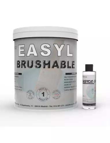 EASYL Brushable é uma silicona de condensação (estanho) auto-tixotrópica formulada para aplicação a pincel ou espátula. A sua consistência tipo pasta impede que o material escorra em superfícies verticais ou com negativos, e a sua cor azulada facilita o controlo visual da espessura de camada durante a pincelagem. É a solução mais eficiente para fabricar moldes diretamente sobre originais de grande formato sem necessidade de encoframento perimetral.